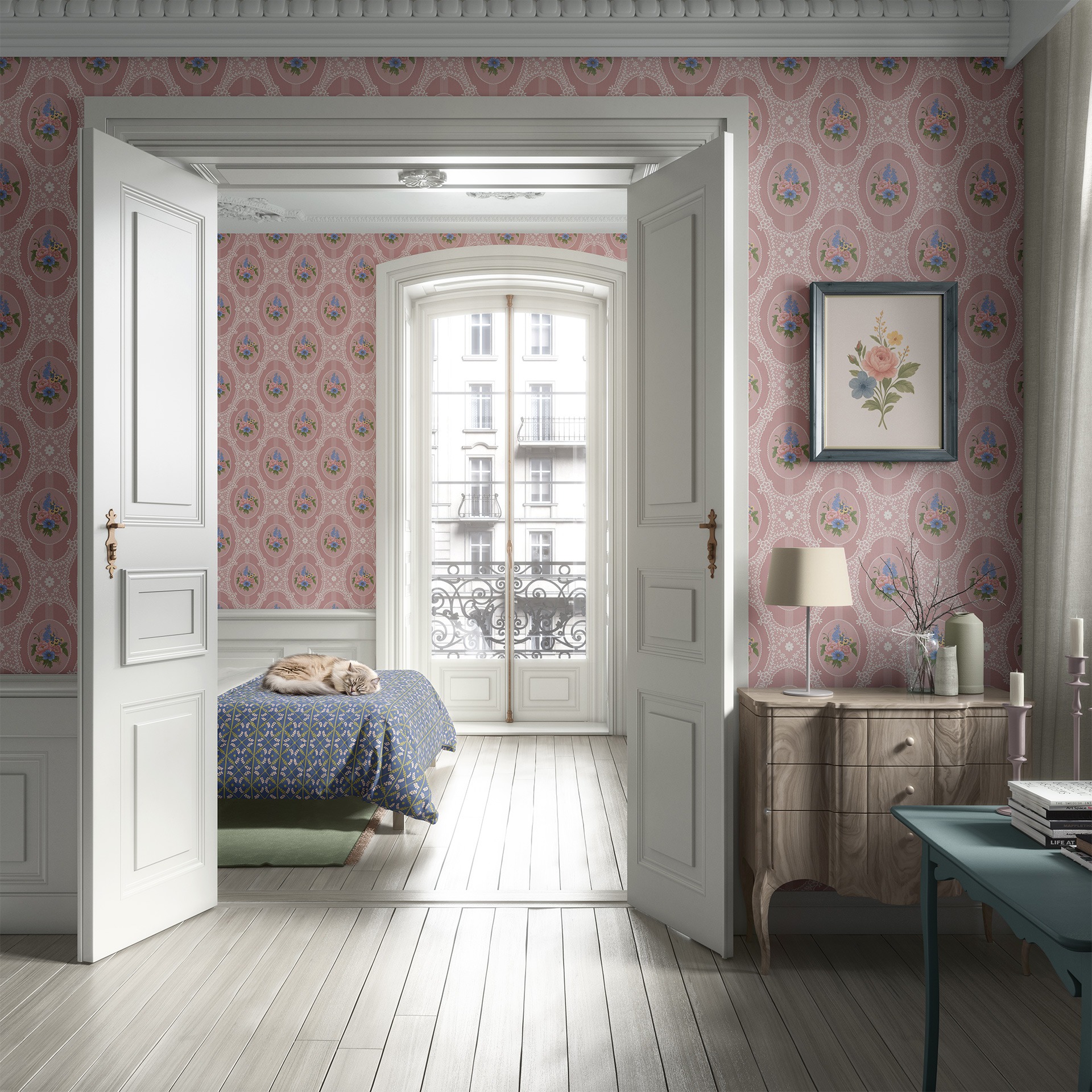 Painterly wallpapers in folk florals, damask vines, and timeless textures — each one a cozy chapter of the Bold Cottage story.