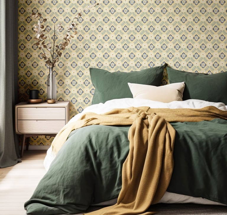 Vintage-inspired wallpapers with folk charm — thoughtfully designed and made for homes that cherish heirloom quality.